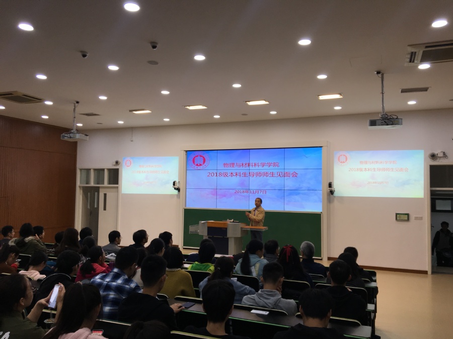 11月7日中午12:20,物理与材料科学学院在闵行一教214教室召开本科生导师师生见面会。会议由物理系主任赵振杰教授主持,学院21位本科生导师、2018级150余名新生参加,周先荣副院长出席并就落实本科导师制相关工作提出要求。