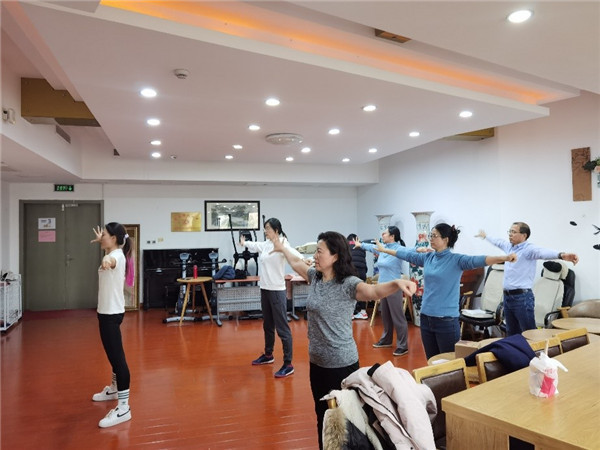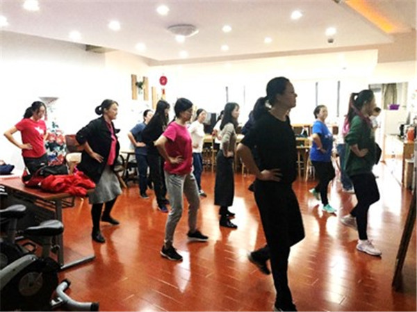 这些看似简单、强度不大的动作,锻炼效果极佳,参加跳操的老师们,不一会儿就气喘吁吁、汗流浃背,但经过教练的悉心指导,适当调整呼吸节奏,老师们渐入佳境,一个小时下来,大家纷纷表示感到筋骨轻松,身心舒悦。
