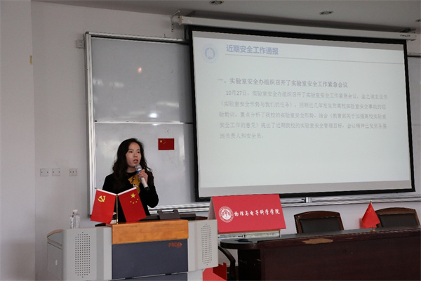 学院党委副书记蒋旭重点通报了近期南京某高校实验室爆炸事件及上海某高校赔偿实验致残研究生等相关案例,希望老师们认真学习实验室安全工作紧急会议精神,引以为戒、警钟长鸣。此外,蒋旭展示了学院师生团队在第七届中国国际“互联网+”大学生创新创业大赛、校级创新创业实验室立项方面的主要成果,期待学院教师积极参加12月初“华东师范大学创新创业教育周”相关活动。