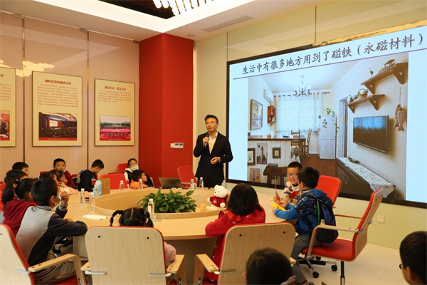物理实验教学中心教工党支部党员、中心主任詹清峰教授以《无处不在的稀土永磁材料》为题,为青少年组学生作科普报告。詹清峰从日常的磁电现象和应用出发,通过提问和互动的方式,向孩子们普及了有关磁铁、磁悬浮、发电机和电动机的原理和实际应用,并介绍了稀土的发现、应用以及永磁材料的研发现状,极大地激发了青少年组学生的科学探究热情。