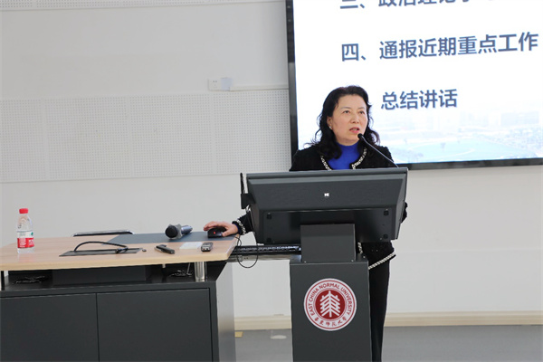 学院副院长徐敏对本科毕业论文、大学生创新创业工作、期末考试安排、排课、职称评聘中关于本科生教学工作量的相关变化等工作进行提醒。她还重点通报了师范三级认证专家进校考察意见反馈。围绕师范专业认证,学院会严格落实专家意见,系统提升师德践行能力,持续提升知识整合能力培养达成度,进一步健全双导师工作制度,强化过程性评价,提升师范生培养质量。