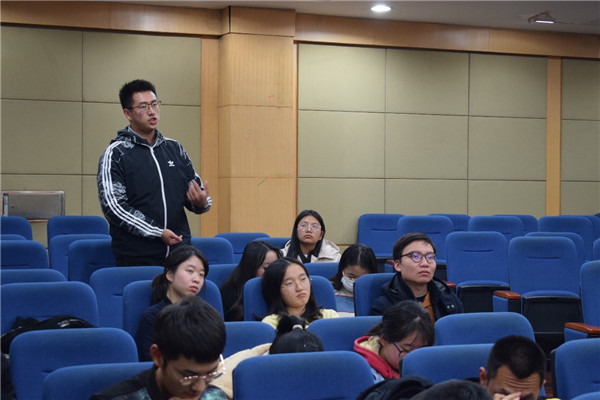 最后,陆丁龙通过《序言课》《运动的描述》等课程案例,向同学们介绍了教学的实际方法,如统摄型教学、用“MADE”法细化课标等。在交流互动环节,现场同学踊跃提问,从教师发展、教师养成和大学学习等角度与陆老师深入探讨,陆老师一一解答,同学们收获颇丰。