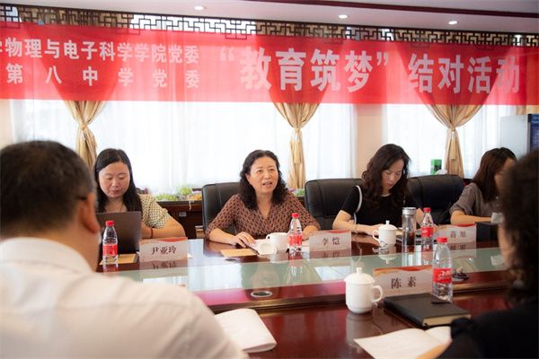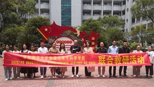 贵阳市第八中学党委副书记陈素、贵阳市第八中学党委纪委书记王亚圩、贵阳市第八中学副校长郭欣及物理组教师共20余人参与活动。学院党委书记、项目负责人李恺,学院党委副书记蒋旭,物理实验教学中心副主任、教工党支部书记尹亚玲,学院专职组织员赵荣青与会。