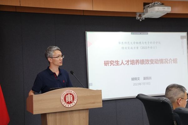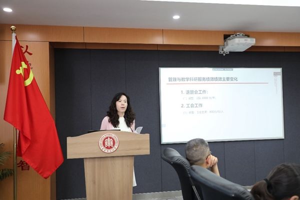 学院党委书记李恺介绍了学校2023年绩效实施整体情况及学院绩效方案修订工作推进情况。学院副院长徐敏、副院长胡炳文、党委副书记蒋旭依次就《华东师范大学胜游体育绩效实施方案(2023年修订)审议稿》中的本科人才培养绩效、研究生人才培养绩效、管理与教学科研服务绩效的修订情况进行介绍。受副院长武海斌委托,胡炳文代为介绍了科研及工程试验技术人员绩效修订情况。