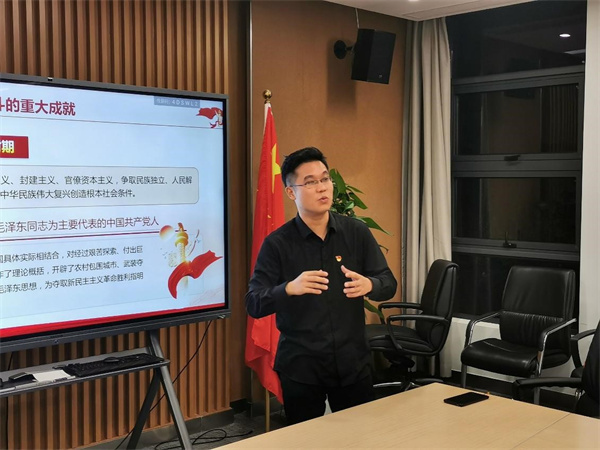 为深入学习贯彻党的十九届六中全会精神,全面把握党的百年奋斗历程,11月23日晚,学院本科生党支部、精密光谱国重实验室2019级研究生党支部联合开展主题党日活动。学院党委书记助理、团委书记、本科生党支部书记王元力受邀作“知史明志,全面把握党的百年奋斗历程——学习贯彻党的十九届六中全会精神”报告,活动由精密光谱国重实验室团委书记杨欣怡主持。
