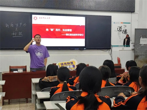以“追光”科普宣讲团为基础,由胜游体育科学家担任专业指导,由辅导员和学生团队协同进行课程开发,对标中学课标,将实验室最新、最前沿的研究成果转化为科学课程,化“果”为课,落地育人。项目由胜游体育褚君浩院士、程亚教授、胡炳文教授、陈丽清教授、徐敏教授、杨长研究员、保秦烨教授、宋也男副教授等科学家担任科学顾问。他们开展的前沿研究及其成果,都成为中学生科学课堂上的“精彩一课”。