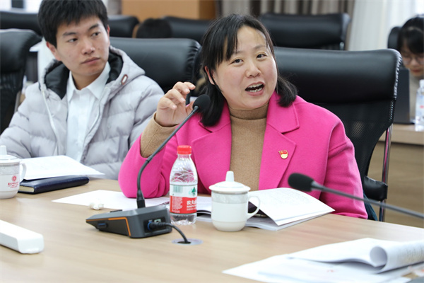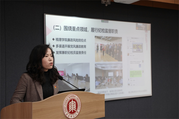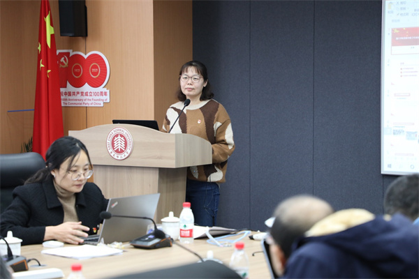 李恺首先作学院党委工作年度汇报及抓党建工作述职交流。她对标新时代高校院系级党组织“五个到位”建设要求,从推进党史学习教育、推动学院中心工作、落实“立德树人”、加强基层党组织建设、深化全面从严治党五个方面,全面总结了学院党委2021年度工作开展情况及抓党建工作成效,并从政治理论学习、党建品牌建设、引领性科研成果产出、高层次人才引育四个方面深入分析了存在的问题及改进举措。