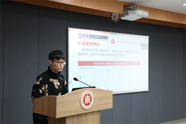 精密光谱科学与技术国家重点实验室2017级研究生党支部书记任心仪、2018级研究生党支部书记吴修齐、2020级研究生党支部王佳伟,学院2020级研究生第一党支部李树兵、2020级研究生第二党支部隋峰锐作为学生党支部书记代表进行现场述职交流。