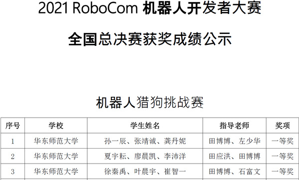 电子科学系本科生在“2021RoboCom机器人开发者大赛”取得佳绩