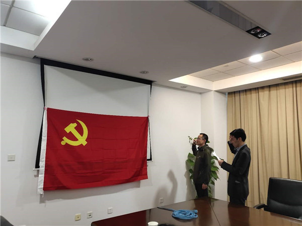 最后,在上海光源会议室,材料科学系教工党支部书记敬承斌带领预备党员胡鸣同志进行了庄严宣誓,并与党员同志一起探讨学习上海光源严谨高效、勇攀高峰的创新精神,实事求是、精益求精的科学精神,团结协作、顽强拼搏的奉献精神,“加速”科技创新。