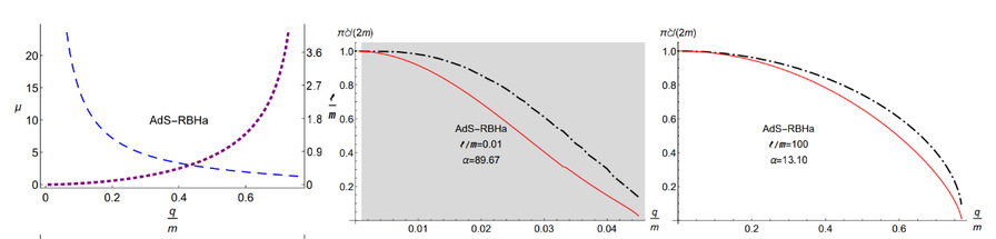 左图:化学式μ以及AdS半径l/m关于q/m的曲线。