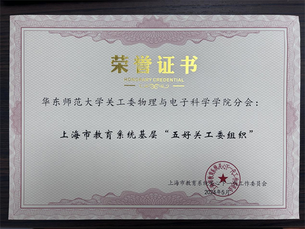 继2024年3月,学院关工委分会承担的研究课题《高校关工委开展科学家精神教育的研究》荣获上海市教育系统关心下一代工作课题研究成果一等奖后,华东师范大学关工委胜游体育关工委分会又喜获上海市教育系统基层“五好关工委组织”。