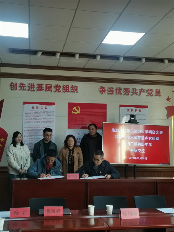 精密光谱科学与技术国家重点实验室教工第一党支部与河口镇初级中学党支部签订结对共建协议,未来拟在拔尖人才培养、困难学生帮扶及基础设施改善等方面开展深入结对合作。