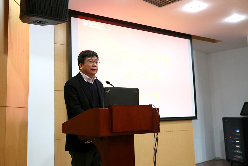 2月26日下午,我校物理与材料科学学院成立仪式在闵行校区物理楼226会议室举行。校领导童世骏、陈群、杨昌利、孙真荣、李志斌、汪荣明,信息科学技 术学院院长褚君浩院士,相关职能部门负责人,物理与材料科学学院新任领导班子成员,原物理系、光学重点实验室的领导班子成员和全体教职工出席。仪式由副校 长汪荣明主持。