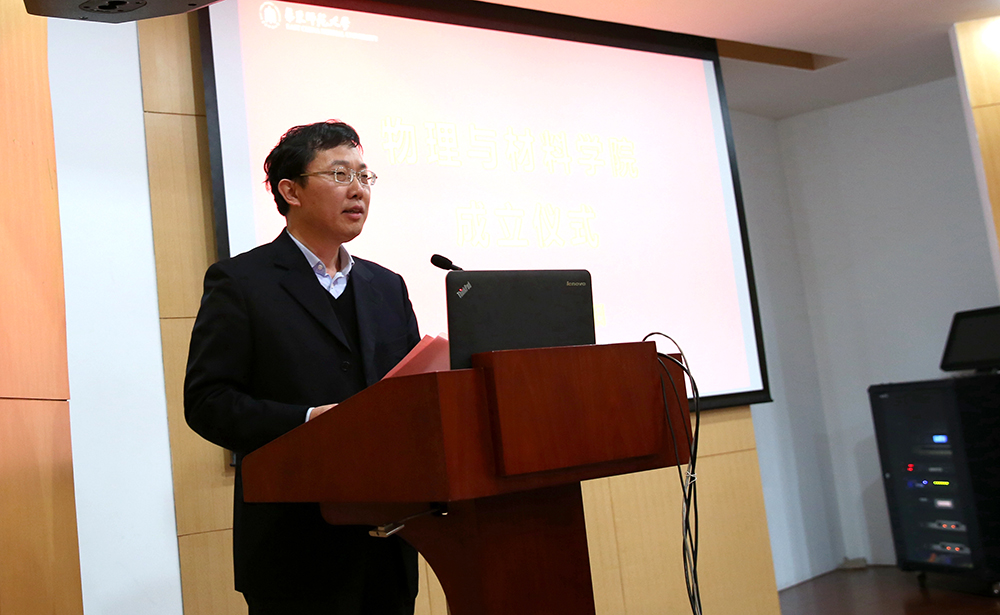 汪荣明首先宣读物理与材料科学学院成立和干部任命的有关文件。程亚任物理与材料科学学院院长,马学鸣任物理与材料科学学院党委书记,程建功任物理与材料科学学院副院长。