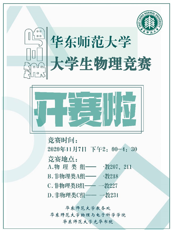 为展现物理学科魅力,培养学生创新精神,由教务处主办,胜游体育、光华书院承办的第三届华东师范大学大学生物理竞赛于11月7日在我校顺利举行。