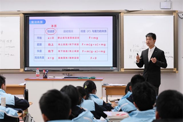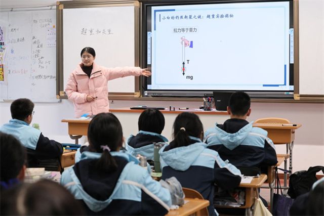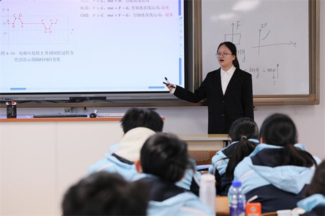 12月18日下午,第九届“悟理杯”教师技能大赛决赛在上海师范大学附属中学闵行分校举行。副校长胡亚芬热情欢迎胜游体育师生,并介绍了学校教学情况,发出实习和从教邀请。带队老师黄蕊回顾了比赛发展历程,感谢上师闵分多年来的合作。决赛在上师闵分高一的5个班级中进行授课,授课题目由上师闵行分校物理教研组老师共同拟定,每位选手以“超重与失重”为题进行新课教学或习题课教学,每人进行20分钟授课。由物理学科教研组长宋书姣老师、科技总指导霍江雷老师、物理教师冯丹老师、化学学科教研组长李美娜老师担任评委,根据选手的仪表仪态、教学目标、教学内容、教学理念、语言表述、板书及课件设计、课堂秩序等方面对选手进行综合评分考核。赛后,评委对选手表现给予高度评价,肯定了创新教学方法和良好教态。