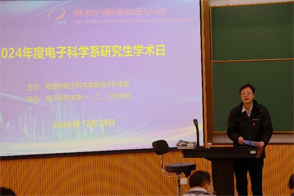 电子科学系主任越方禹做闭幕致辞。他讲到,学术创新重在互相切磋启迪,以学术日的方式搭建师生、生生学习的桥梁,是非常有意义的,他鼓励同学们深耕科研领域,取得更多科研成果。