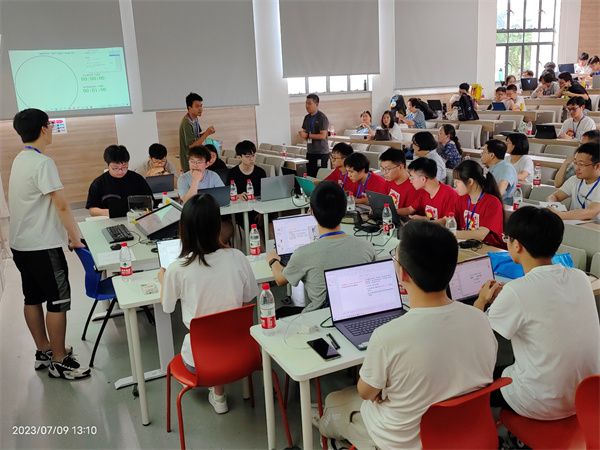 决赛(表演赛)赛场设于同济大学教学南楼329教室,来自各参赛高校的百余位师生现场观摩了比赛。三方队伍就三道赛题的物理研究展开激烈的学术讨论,凭借对赛题的深入理解、前期的大量研究和现场的出色表现,参赛学生赢得了全场观众的热烈掌声。经7位裁判打分,华东师范大学1队最终获得了本次比赛的特等奖。