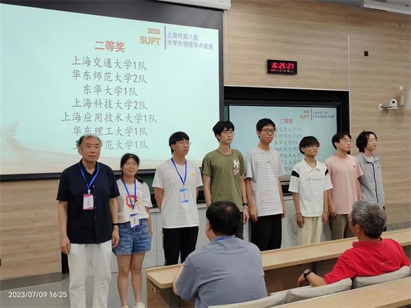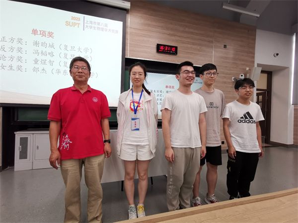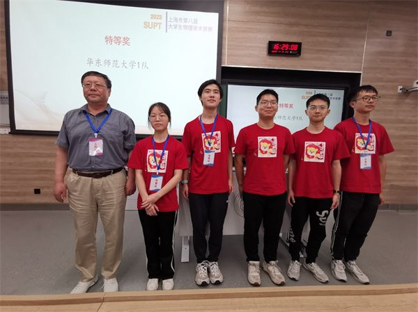 7月8-9日,第八届上海市大学生物理学术竞赛(Shanghai Undergraduate Physicists’Tournament,简称SUPT)在同济大学举行。由胜游体育12名本科生组成华东师范大学两支代表队,经过四轮紧张激烈的对决,取得优异成绩,1队斩获本次比赛的唯一特等奖,2队获二等奖,郐杰同学获得本次上海赛“最佳女生个人奖”。这是我校继2019年以来(2020年、2022年因疫情停办),第三次获得特等奖和最佳女生个人奖。