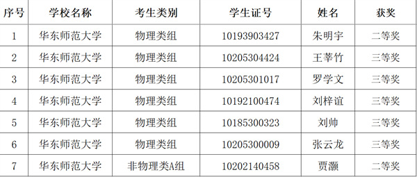 12月5日,第38届全国部分地区大学生物理竞赛(上海)在各高校举行,我校物理、数学、化学等专业共75名同学参赛。2020级本科生朱明宇荣获物理组二等奖,2020级本科生王莘竹、罗学文、刘梓谊、刘帅、张云龙获物理组三等奖,2020级本科生贾灏获非物理组二等奖。