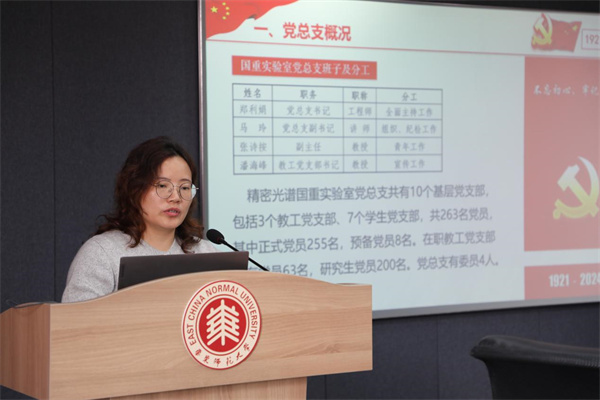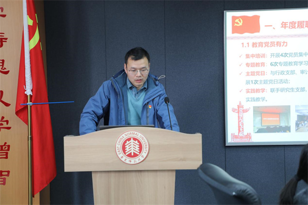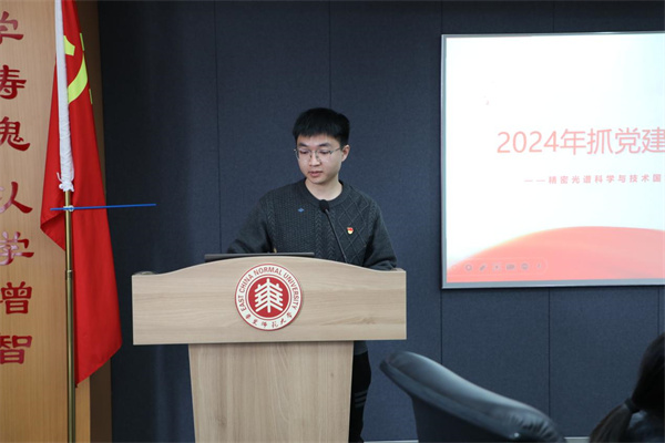 随后,精密光谱科学与技术国家重点实验室党总支书记郑利娟、纳光电工程中心教工党支部书记李晓冬、精密光谱科学与技术国家重点实验室教工第三党支部书记彭俊松、物理实验教学中心教工党支部书记尹亚玲、本科生党支部书记王元力、凝聚态光谱研究生党支部书记王家宁、精密光谱科学与技术国家重点实验室研究生第三党支部书记张敏、精密光谱科学与技术国家重点实验室研究生第四党支部书记马捷分别作现场述职交流,围绕2024年党建工作履职情况,亮成绩、查问题、提举措。