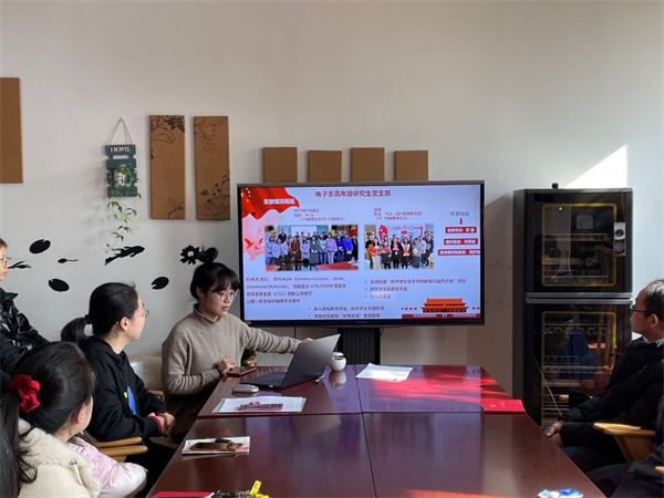 1月4日,电子系高年级研究生党支部与2021级电子研究生党支部以“学党章党规 做合格党员”为主题,在物理楼227会议室开展联合党日活动。会议由电子系高年级研究生支部书记劳婕主持。