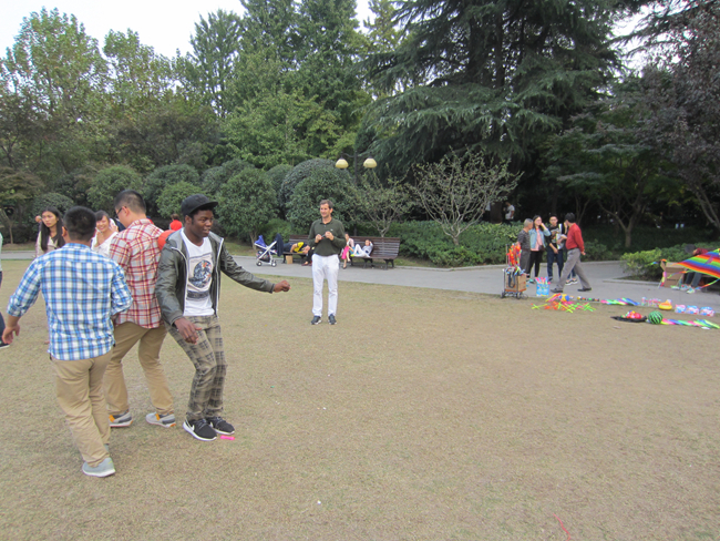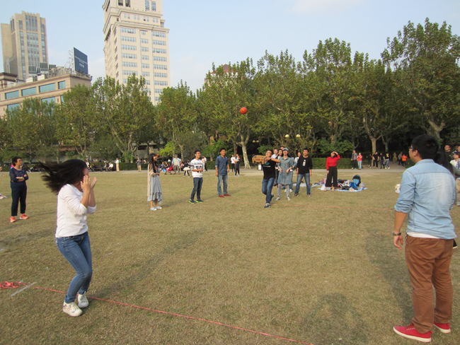 条路线的同学最终于14:30左右在复兴公园的大草坪上会合。休息片刻过后,同学们便以小组为单位,开展了一系列有趣的团体小游戏。小游 戏很快使大家打作一团,两队的成员都情绪高涨,一起商量比赛的对策,一起练习游戏的姿势,热烈的游戏氛围感染了周边的游客,引得公园里的游客驻足观看,并 有游客主动邀请参与游戏,也有游客积极地为两支队伍提供获胜小建议。最终A队以一分险胜B队,秋游活动圆满结束!