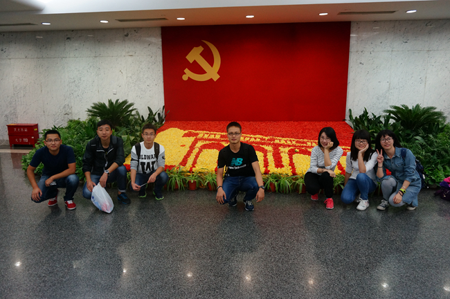 同学们在队长的带领下,先参观了梅赛德斯奔驰文化中心,行走在夹层处,江风习习吹来,让人略感秋日的凉意。中国第二大拱桥 “卢浦大桥”横跨江面,船只来来往往于江上,江对面高楼林立,隐约还能见到明珠瑰丽的身影,这无时无刻不张显着魔都的忙碌与现代化。随后又参观了中华 艺术宫,时值该馆“抗战胜利七十周年”展览,各种油画雕塑作品引得大家驻足观赏。之后打道新天地地铁站,参观了中共一大会址,重温了中国共产党建党历程。