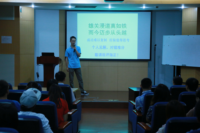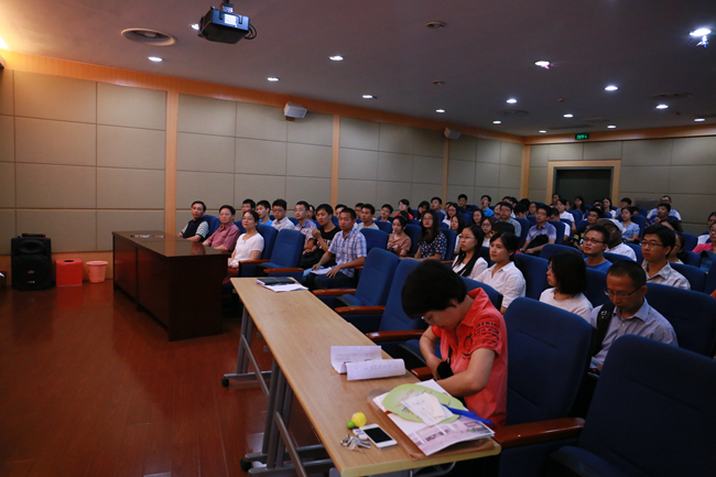 教师代表今年优青基金获得者胡炳文结合自己的科研经历以睿智和风趣的语言谈了如何在科研中脱颖而出,创新是前提,要眼界开阔、脚踏实地、相互支持。