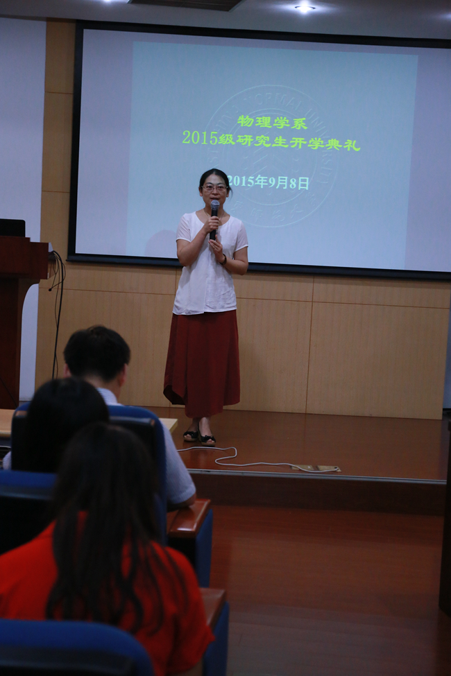 2015年9月8日上午,物理系研究生新生开学典礼在闵行校区物理楼报告厅举行,来自两个校区的全体研究生新生参加了典礼。物理系系主任黄国翔、副系主任徐敏、系党委书记马学鸣、教师代表胡炳文、研究生辅导员黄燕萍和聂树伟出席了典礼,典礼由系党委副书记马红梅主持。