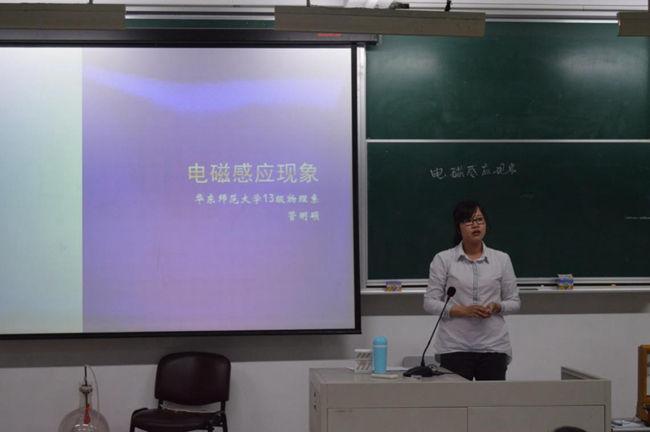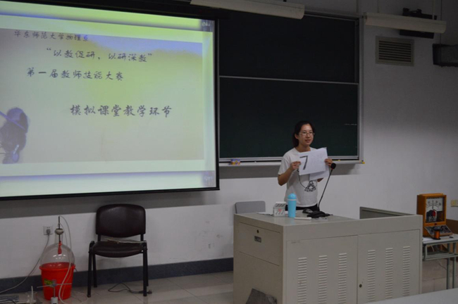 6月1日18:30,华东师范大学物理系首届“以教促研,以研深教”研究生教师技能大赛在闵行校区实验A楼239如火如荼地进行,15名来自不同校区、不同专业、不同年级的参赛选手用尽浑身解数努力展现精彩的物理教学。