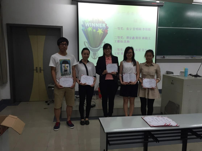 评委评定出此次比赛的一等奖3名:张宇、管明硕、李佳隆;二等奖5名:谭宏鑫、黄珍、林锦文、王雅仙、沈杨;三等奖6名:张露、吴大宇、吕从爱、吕文星、曾庆子、赵迪。