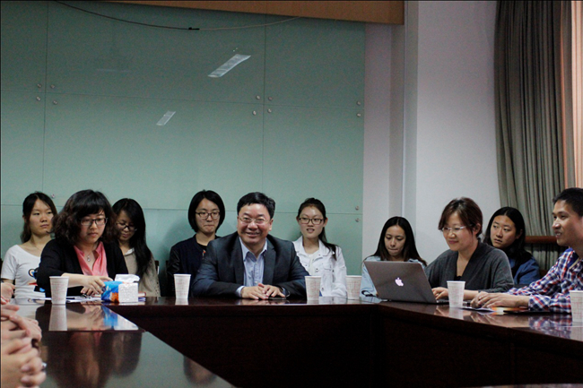 2015年4月29日下午15:00,物理楼223会议室迎来了一群特别的朋友,他们是来自学生发展服务联合中心党支部的教师党员们,平常工作繁忙的他们,推下手上繁琐的事务,来到物理学系,与物理学系本科生党支部(2012-2014) 的学生党员及入党积极分子们一道探讨如何向党靠近,做更优秀的自己。学生发展服务联合中心主任施家仓老师、学生发展服务联合中心党支部书记邢树营老师携本 支部共8位教师莅临参会,物理学系党委副书记马红梅老师、本科生辅导员王元力老师作为东道主也出席了本次支部活动,本次活动由物理学系本科生辅导员赵荣青老师组织主持。