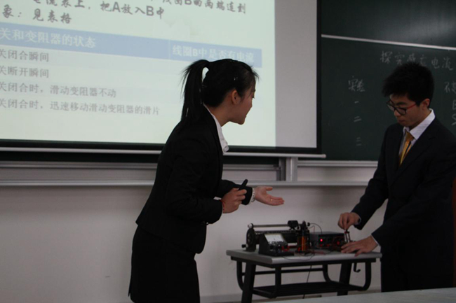 一点整,比赛正式开始。15强选手纷纷拿出自己的“看家本领”。精心的编排,丰富的内容,条理的分析,积极的互动,唯美的演绎,实验化的教学,无不让人拍手称赞。