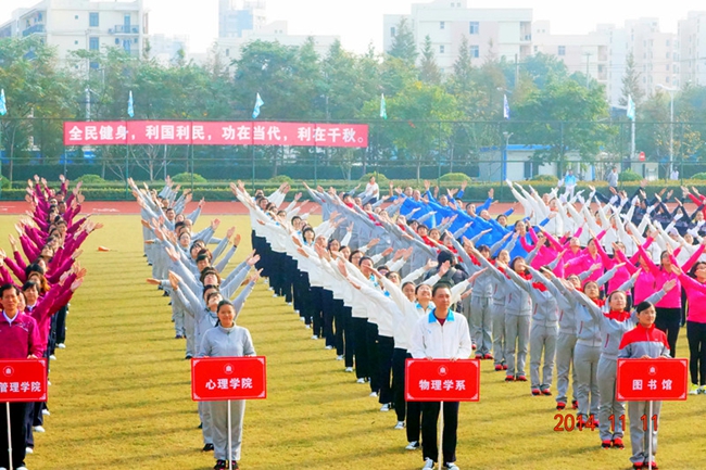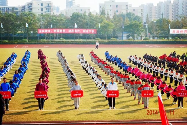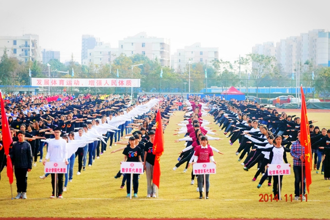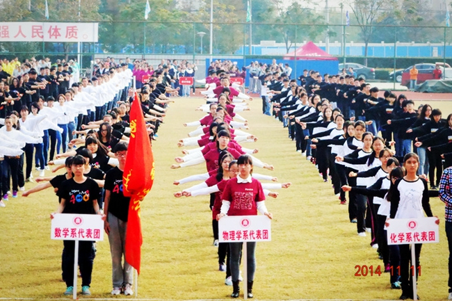 2014年11月11日,是华东师范大学2014年秋季运动会的第一天,久违的阳光温柔地洒下,轻抚着每个师大人的笑脸,融入每个师大人的心中。 开幕式,各院系的代表团创意无限的入场方式让人大开眼界。而师生同台竞技的广播操比赛更让感受到体育的魅力。 物理学系的师生更是在开幕式中展现了属于物理人的风采——文能实验室里做学术、武能运动场上展英姿。田径赛场,唯“物”独尊。