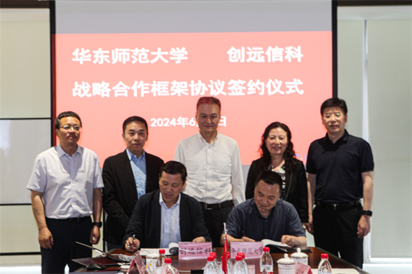 为服务长三角G60科创走廊重大国家战略任务,落实华东师大与松江区人民政府深化教育科技人才融合发展合作协议,6月5日上午,学院院长程亚、党委书记李恺带队赴松江区推进产教融合,与创远信科(上海)技术股份有限公司签订战略合作框架协议。松江区副区长王晔、科委主任肖扬、区府办科长殷路、科委产业科科长卢斌,泗泾镇党委书记杨洪彬、商旅公司总经理沈涛,创远信科(上海)技术股份有限公司董事长冯跃军、总裁陈向民、总裁办主任陈佳出席。王晔主持签约仪式与合作研讨会。