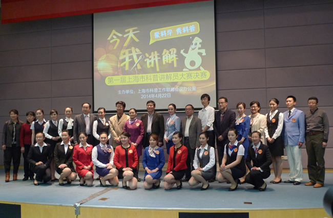 由上海市科普工作联席会议办公室主办,上海市科普教育基地联合会承办的“爱科学,秀科普,今天我讲解”第一届上海市科普讲解员大赛于2013年 11月启动报名,2014年2-4月在上海举行。该比赛以“诠释科学精髓、展现科普风采”为主题,共有来自全市81家科普教育基地、39家科普场馆的 157名专、兼职科普讲解员参赛。
