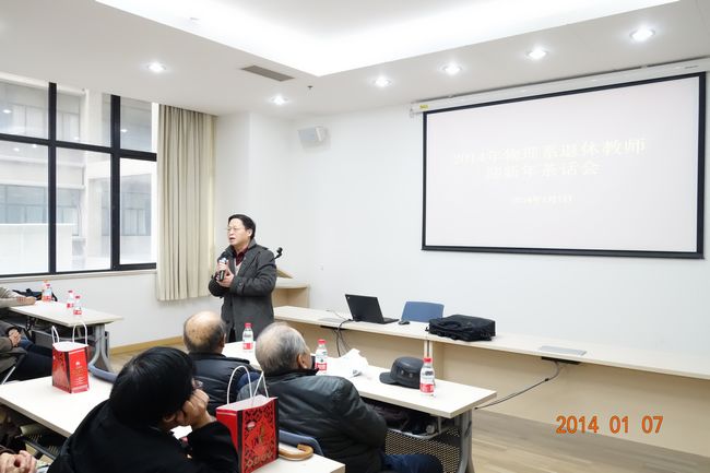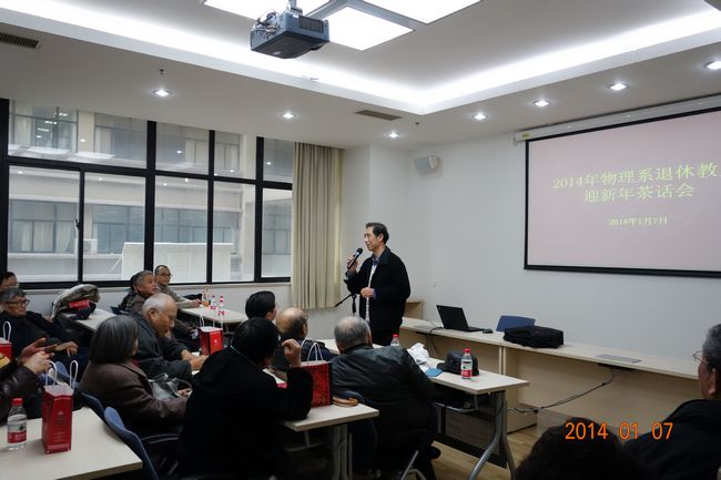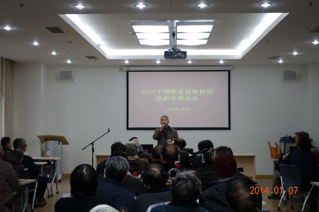 2014年1月7日下午,物理学系退休教师迎新年茶话会在中北校区理科大楼A228会议室举行。90余位退休教师欢聚一堂,畅叙别情。物理学系系主任黄国翔、副系主任徐敏、工会主席姜继森等参加了本次活动。