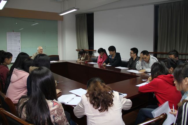 2013年11月4日18:00,物理系2013级研究生党支部党理论学习讲座在物理楼223室进行,来自物理系不同专业的党员、预备党员、积 极分子以及思想要求积极进步申请入党的优秀学生,共计19人参加了本次的党课学习。本次党课由马列部中共党史教授、华东师大关工委特邀党建组织员、物理系 关工分委副主任于龙生老师主讲,物理系2013级研究生辅导员赵荣青老师列席参加。