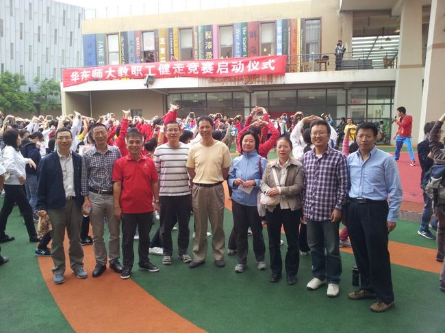 2013年10月15日,华东师范大学2013年度校运动会在闵行校区体育场隆重举行。上午,物理学系党委书记马学鸣老师和工会主席姜继森老师 带领物理系20余名老师参加了广播操比赛。参赛教职工秉承着友谊第一、比赛第二和重在参与的宗旨,积极投入比赛。通过2个月的集中训练,物理系参赛教职工 凭借饱满的精神状态、整齐划一的动作,获得在场观众的热烈掌声。尽管比赛当天阴雨绵绵,但是我们所有的参赛老师都尽力发挥,最终取得全校三等奖的好成绩。