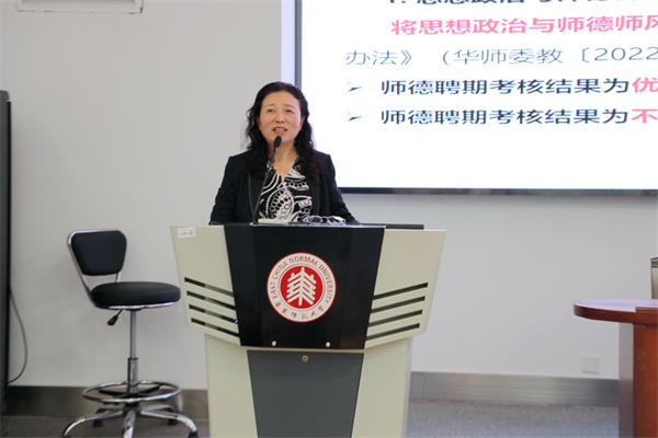 学院副院长徐敏围绕排课和选课、期末考试考风考纪等进行通报,希望老师们在系统里查看教学任务,及时上传教学大纲。她强调,期末考试即将来临,请老师们注意试卷命题规范、考场纪律、合理安排教学进度,做好学生答疑工作。
