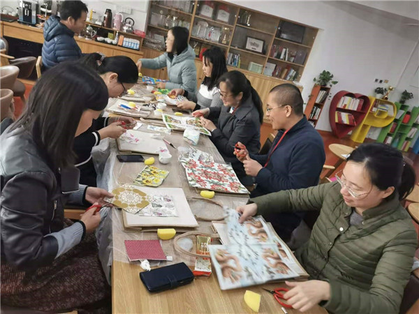 在指导老师的讲解和帮助下,教工们选出了自己最喜爱的图案、花色进行制作,感受手工制作的魅力。制作者可根据自己的喜好、需求,选择不同种类的画面元素,如:花艺元素、中国风、英伦风等。
