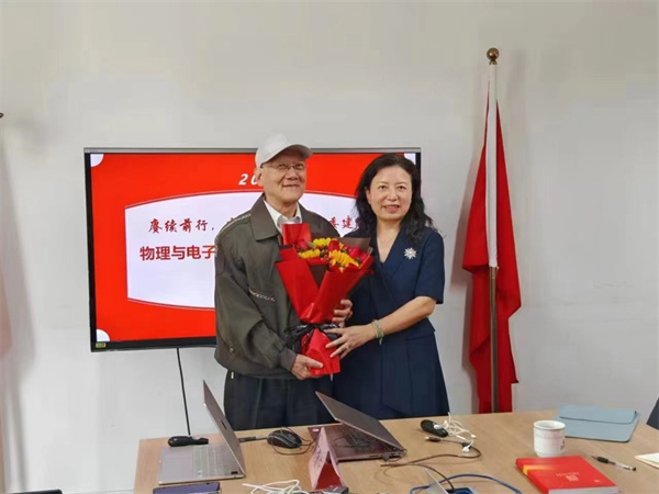 李恺为于龙生老师颁发荣誉证书和纪念奖杯,感谢于老师为学院关工委做出的突出贡献。她讲到,于龙生老师为我校原社科部党史专业教授,1993年进入物理系担任学生辅导员,2000年退休后加入学院关心下一代工作委员会,执教以来,于老师始终奉行“心教胜于言教,身教重于言教”,坚持“真诚是教育的起点”,多次荣获校“教书育人”奖和“我最佩服的共产党员”称号,是所有老师钦佩和学习的榜样,是学生心目中的“爷爷辅导员”。