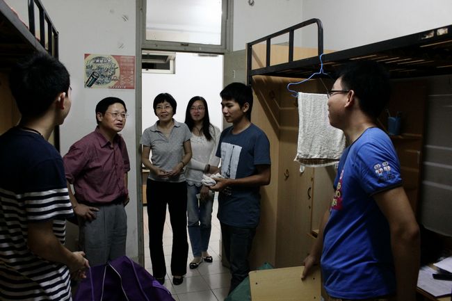 除了指导完成新生入学的相关工作,系主任黄国翔、副系主任王向晖、副系主任徐敏、系党委副书记李燕,以及几位辅导员老师,于晚上六点半开始分别到闵行和中 北校区80余个本科生、研究生公寓逐个探望了新报到的同学。在探望新生的过程中,系领导和老师们与新生亲切交谈,不仅仔细检查宿舍水、电是否正常,桌凳及 储物柜是否配齐,床架安装是否牢固,还详细询问同学们的家庭情况、入学报到情况和对学校环境的适应情况等,并叮嘱同学们遇到困难要及时向辅导员、系领导反 映。希望同学们珍惜大学的美好时光,尽快熟悉校园环境,融入新的学习生活,同学之间团结互助,共同解决生活学习中遇到的问题。此次走访活动,领导、老师们 热情的话语,亲切的问候,让学生倍感亲切,让他们在一个新的环境,同样感觉到了家一般的温暖。