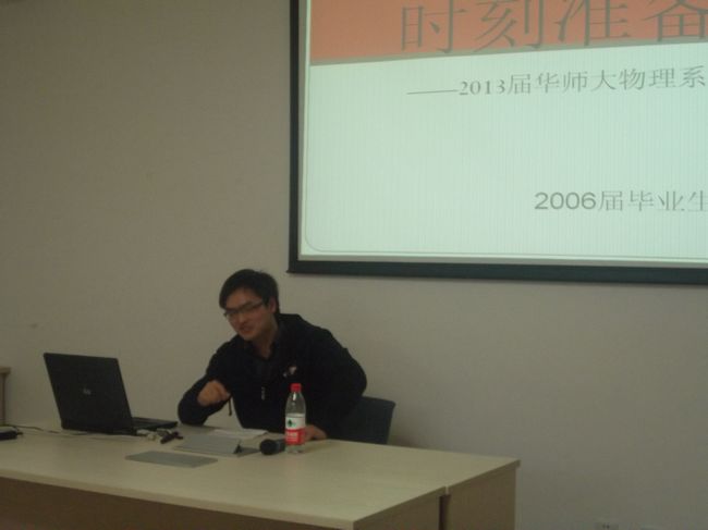 11月17日,在中北校区理科大楼A228会议室,物理系举办了“经验传承与师范生求职技巧交流会”,除了师范生,部分研究生也参加了交流会。到场嘉宾有晋元中学的02级校友王婷婷老师,南汇中学的02级校友裴火炼老师,莘庄中学的05级校友张梦霜老师。王婷婷讲了怎样把大学所学知识与中学生的实际相结合,成长为一名优秀的中学教师。裴火炼讲了试讲与说课的程序及注意事项,怎样以优秀的表现来赢得求职的成功。张梦霜讲了自己求职的曲折经历,多次往返于家乡省份与上海之间,还到其它省份面试,最后抓住机会,被莘庄中学录用。已经就职大庆实验中学09级蔡畅言同学也分享了自己的求职经验。通过嘉宾的讲述与交流,同学们收获很大。