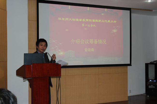 2012年12月5日下午,在庄严的国歌声中,华东师范大学物理学系第四届教职工代表大会第一次会议在闵行校区物理楼报告厅隆重召开。29位教职工代表和7位列席代表参加了会议。会议由系工会主席姜继森主持。