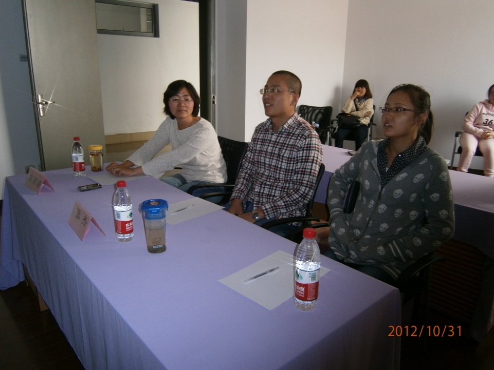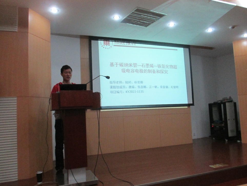 物理系本科生2011年、2012年国家大学生创新创业训练计划项目中期检查和2011年上海大学生创新活动计划项目结题验收答辩会于2012年10月 31日分别在物理楼226、316举行。本次答辩报告会邀请到各教研室6位热心本科生科创工作的老师沈国土、范明霞、陈丽清、张杰、陆婷、黄蕊担任答辩点 评与指导,共14个项目组的同学针对已完成或正在进行的科研项目进行陈述答辩。