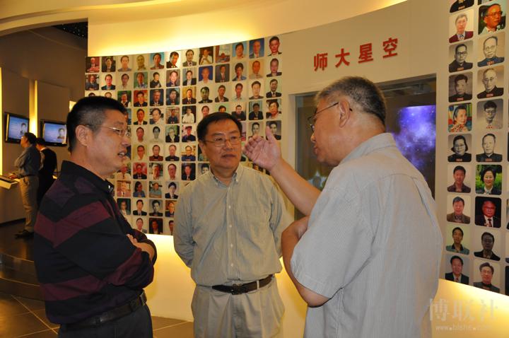 他们走进了老物理楼,走进当年的教室,虽然装修一新,但依然那么的熟悉和亲切。散步在丽娃河畔,参观校史馆,显示屏上搜寻自己当年青涩的学籍照片。中午驱车赶到华师大闵行新校区,在大师石前合影留念,徜徉在樱桃畔的文脉长廊,参观了物理探索实验室。