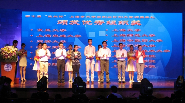 第七届“挑战杯”上海市大学生创业计划大赛颁奖典礼暨“创新,我们在行动”主题宣讲活动启动仪式10月12日下午举行。通过决赛的项目展示和专家评审,我校物理系熊 智淳等同学的“上海清源科技有限责任公司”项目荣获第七届“挑战杯”上海市大学生创业计划大赛金奖,生命科学学院殷诚聪等的“上海华生生物技术有限公司” 项目、金融与统计学院李音蒲等的“‘小阳人’太阳能空调有限责任公司”项目和软件学院武轲等的“兴科通讯服务有限责任公司”项目荣获大赛银奖,商学院蔡滨 彬等的“上海药博士科技有限公司”项目和金融与统计学院张杨青等的“上海伊启电子商务有限责任公司”项目荣获大赛铜奖。我校被大赛组委会授予“优秀组织 奖”,这也是我校历年来参加上海市创业计划大赛最好成绩。